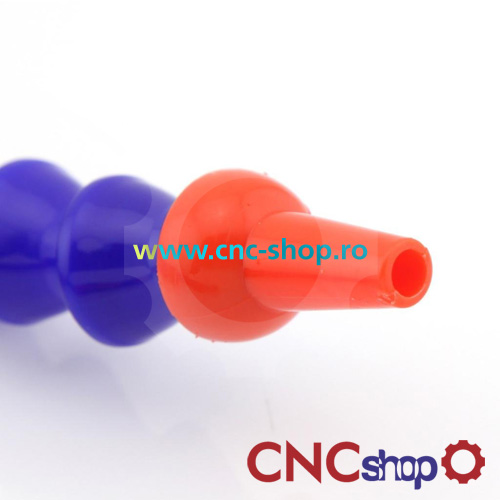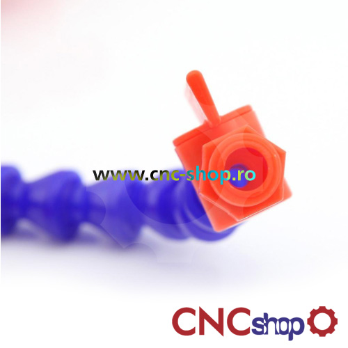Furtun flexibil pt. emulsie racire. Deosebit de util in cazul frezarilor ce necesita racire. Din material plastic, neutru la substantele de racire (ulei/apa/emulsii). Construit modular, permite pozitionare cu usurinta in locul dorit. Prevazut cu robinet de inchidere. Lungime 300mm, prinderea pe filet 1/4". Culoare:albastru/portocaliu